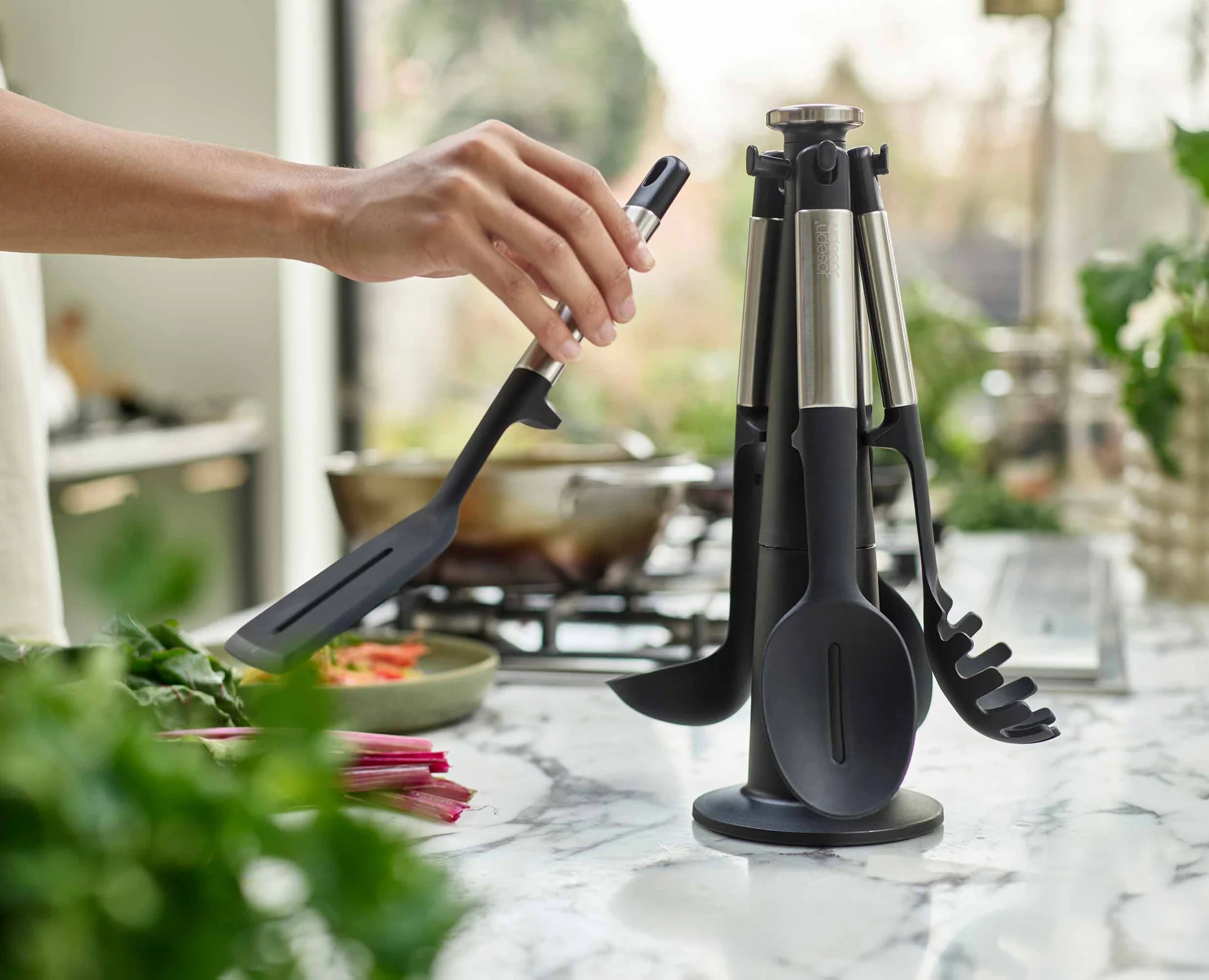 ست کفگیر و ملاقه ۶ پارچه استیل و مشکی جوزف جوزف Joseph Joseph Elevate Stainless Steel Silicone Utensil Carousel, Set of 6